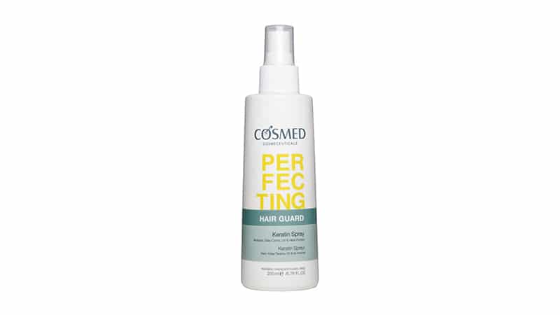 Çevresel etmenlerin yanı sıra ilerleyen yaş ile birlikte zarar gören saçlara COSMED, HAIR GUARD Keratin Sprey ile müdahale ediyor. İçerdiği keratin ve bitkisel proteinler yıpranmış ve işlem görmüş saçların yeniden yapılanmasına yardımcı oluyor. Nemlendirici özelliği sayesinde saçların kolay taranmasına ve şekil almasına yardımcı olurken, saçların güneş ışınlarının zararlı etkilerinden korunmasını da destekliyor.